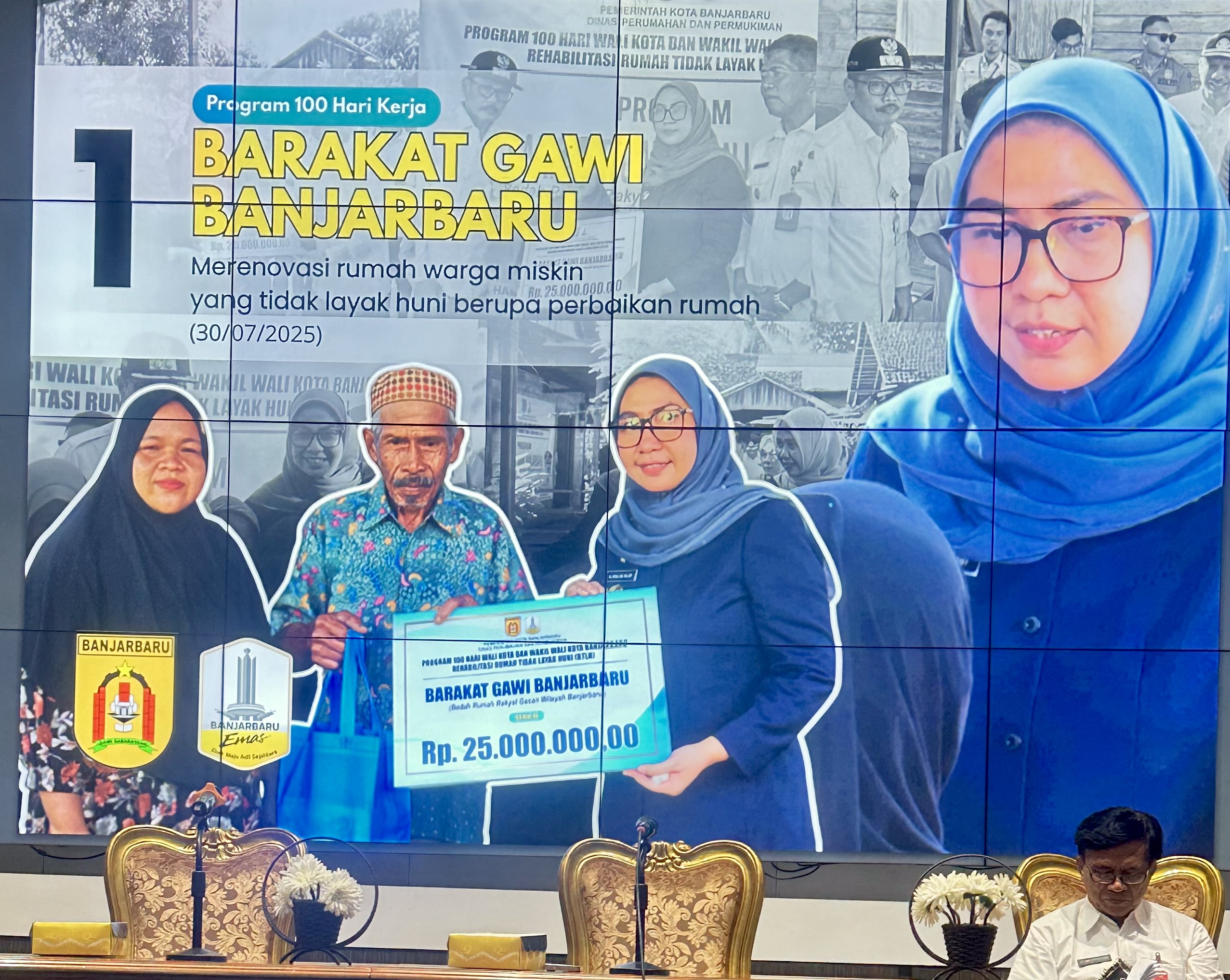 Liputan24.Net– Banjarbaru .Satu persatu slide ganbar di tampil kan dihadapan puluhan jurnalis , baik cetak , online. , dan elektronik yang tergabung dalam press Room Kominfo kota Banjarbaru untuk melihat 100 hari dalam capaian kerja yang dilakukan pasangan Walikota Erna Lisa Halaby dan Wakil Walikota Wartono .