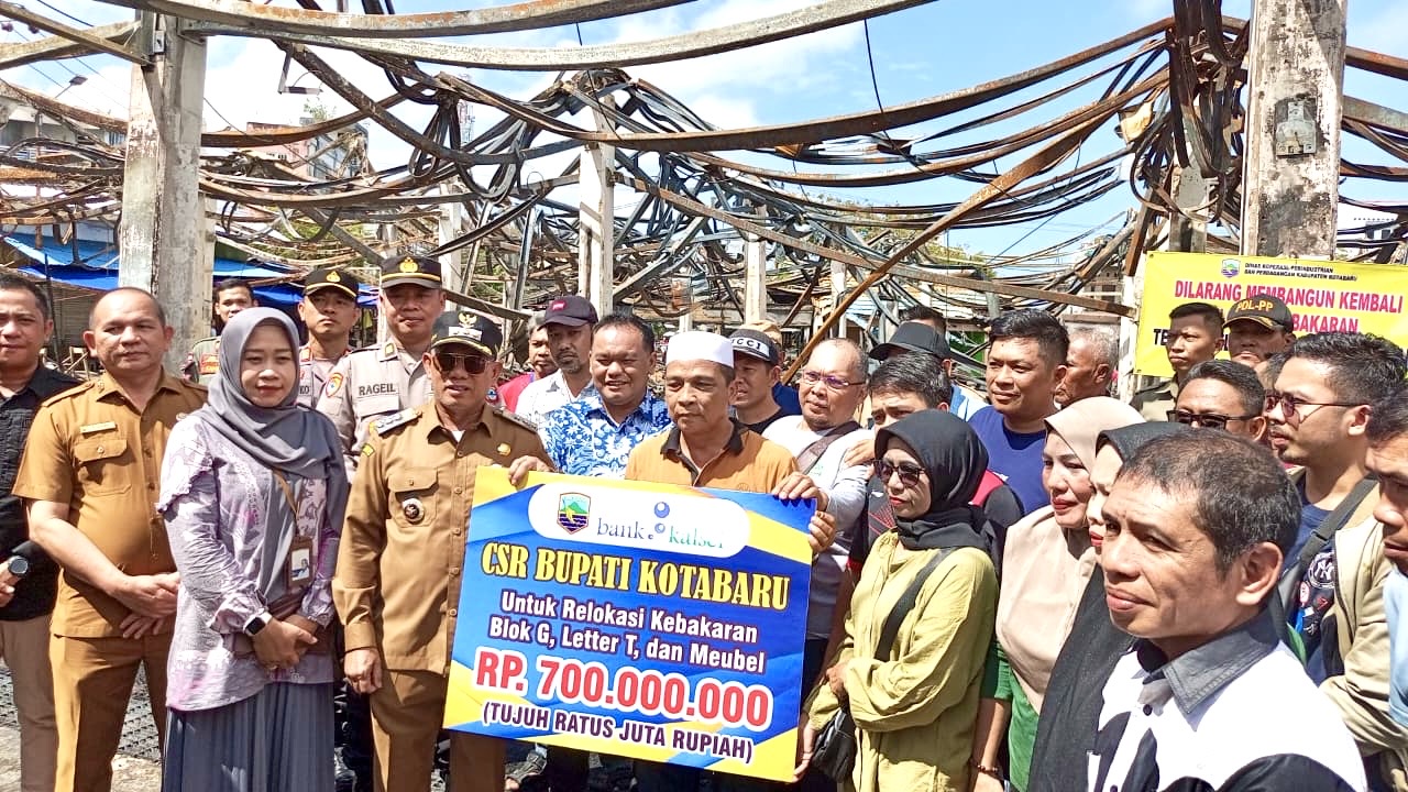 Liputan 24.Net—Kotabaru. Sebagai wujud kepedulian Bupati Kotabaru H.Muhammad Rusli, S. Sos menyampaikan rasa duka sekaligus menyerahkan bantuan CSR Bank Kalsel kepada 167 kios pedagang terdampak, berupa uang senilai total Rp. 700 juta. Selasa (07/10/2025).