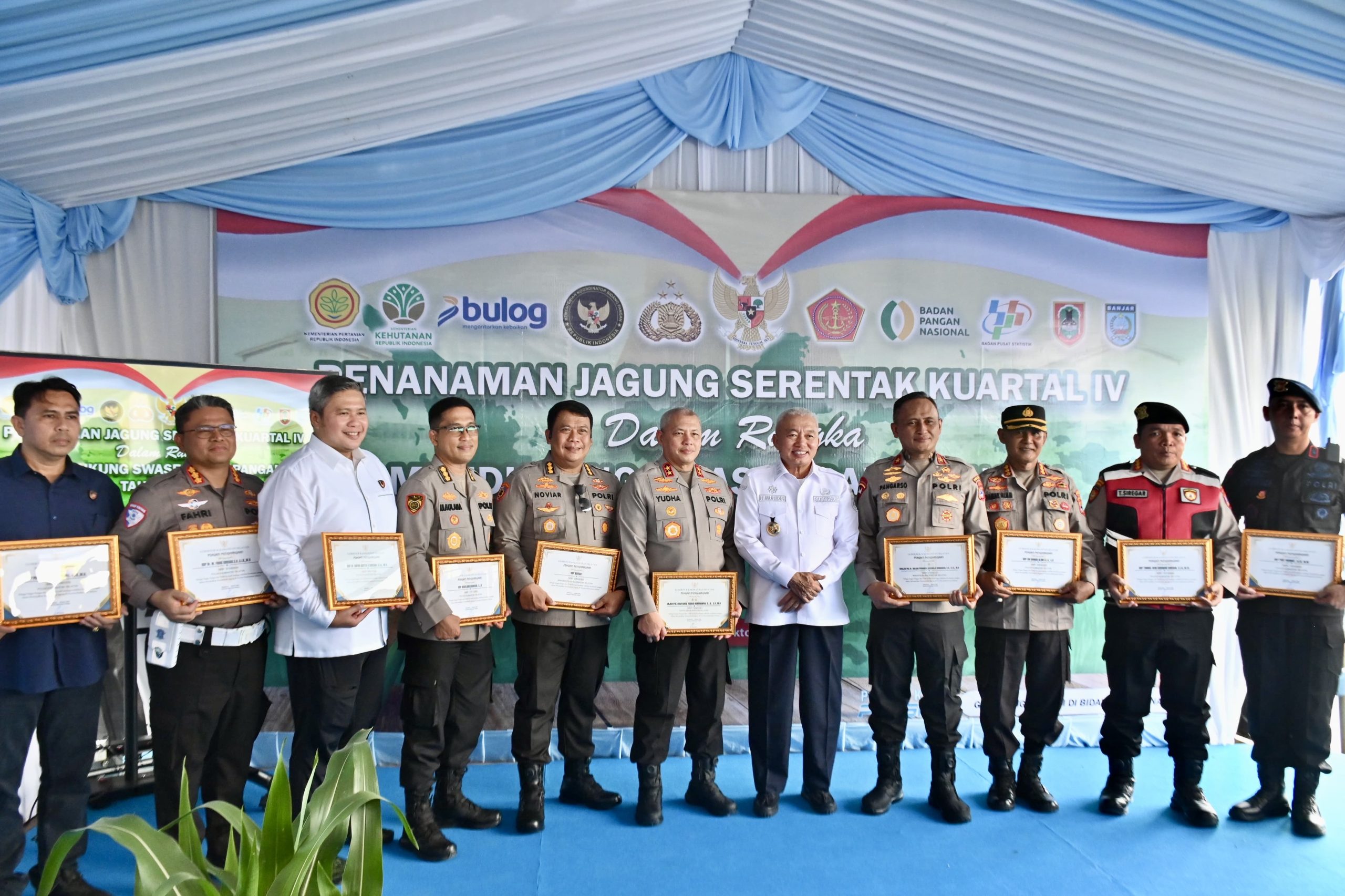 Penghargaan diserahkan dalam sebuah acara Penanaman Jagung Serentak Kuartal IV yang bertempat di Lahan Ketahanan Pangan Polda Kalsel, Jalan Gubernur Syarkawi KM 17, Kabupaten Banjar, Rabu (8/10/2025).