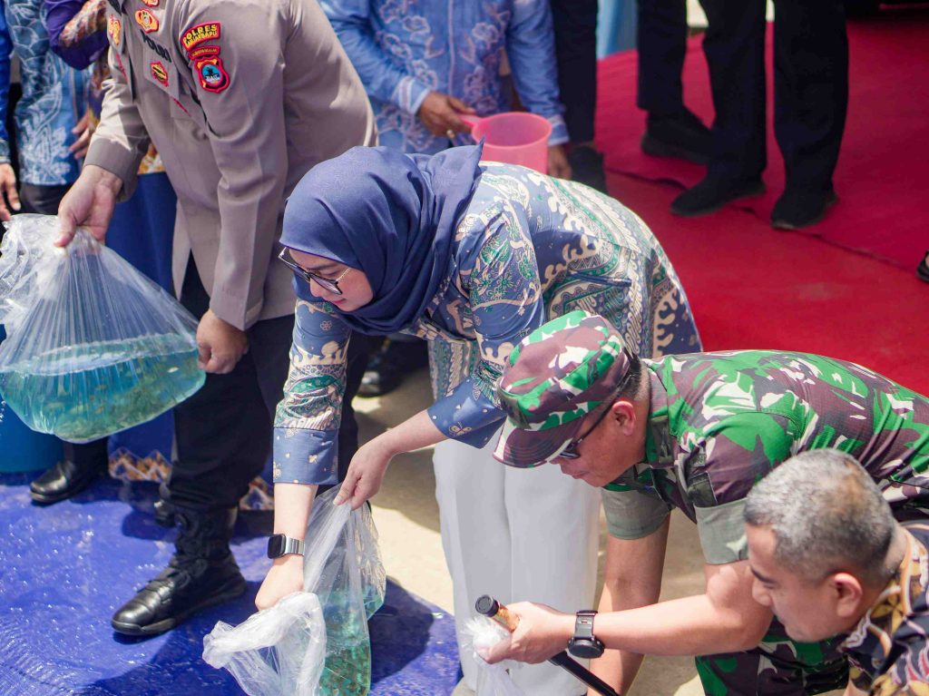 Sebagai simbol dimulainya pemanfaatan, Wali Kota bersama Forum Koordinasi Pimpinan Daerah (Forkopimda) menaburkan benih ikan ke dalam kolam.