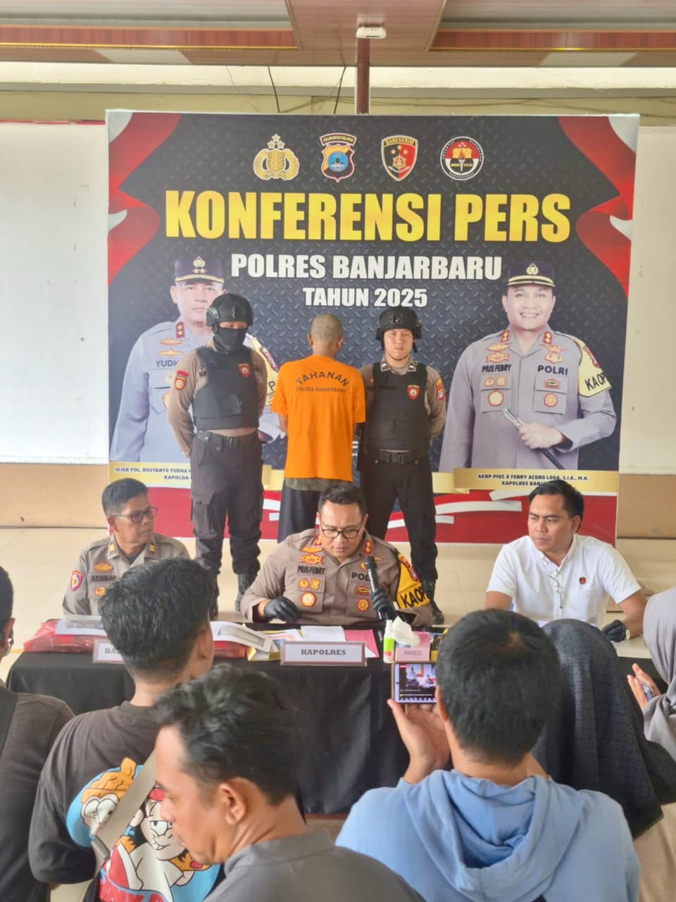 Kapolres Banjarbaru AKBP Pius X Febri Aceng Loda dalam konferensi pers pada Senin (17/11/2025) mengungkapkan penangkapan pelaku AG dilakukan pada Sabtu, 15 November 2025, oleh Unit Resmob Satreskrim Polres Banjarbaru.
