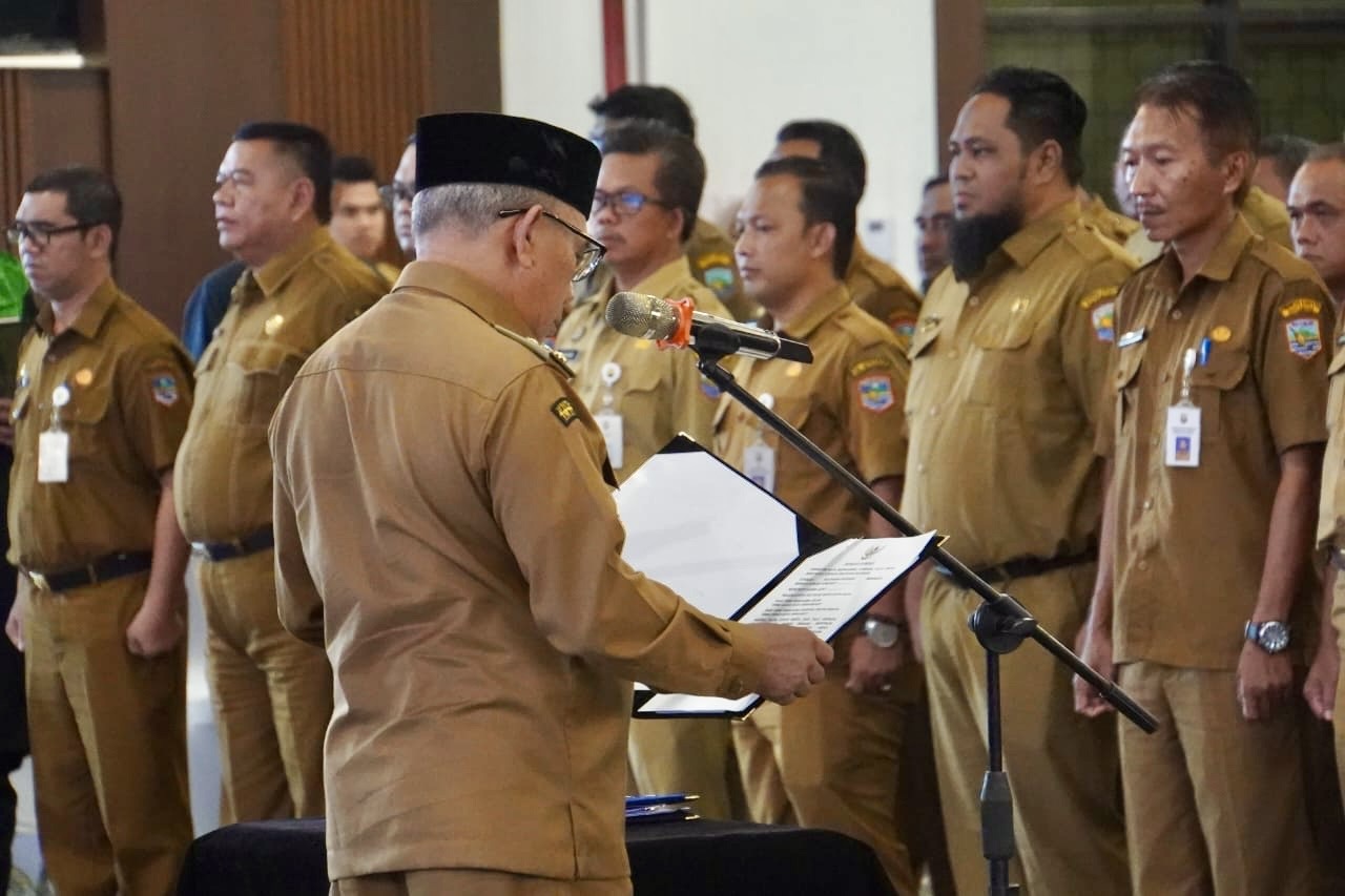 Dalam sambutannya, Bupati Rusli menyampaikan ucapan selamat kepada para pejabat yang dilantik, seraya menekankan pentingnya tanggung jawab dan semangat baru dalam menjalankan amanah jabatan.