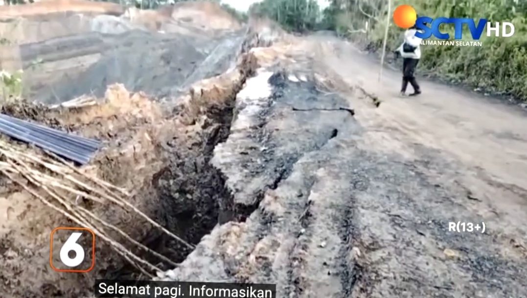 Liputan24.Net—Kabupaten Ban Jalan desa di Desa Gunung Ulin, Kecamatan Mataraman, Kabupaten Banjar, longsor setelah diguyur hujan deras pada Selasa (9/12/2025) sore. Longsor tersebut sempat membahayakan pengguna jalan karena sebagian badan jalan ambles ke lubang galian tambang batubara yang berada tepat disampingnya.
