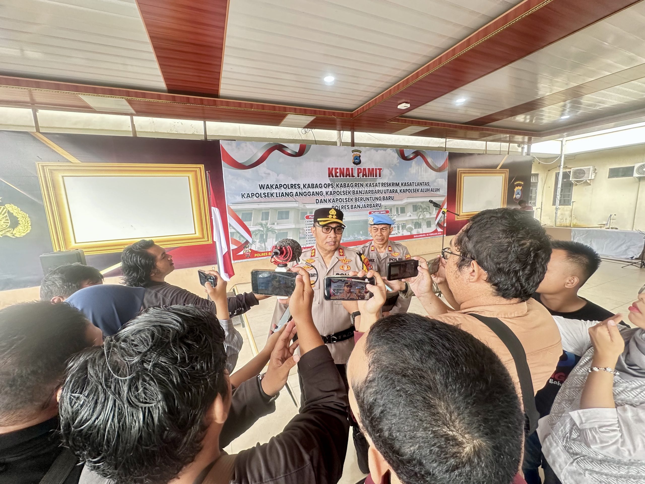 Liputan24.net – Banjarbaru. Kapolres Banjarbaru AKBP Pius X. Febry Aceng Loda memimpin serah terima jabatan (sertijab) sejumlah perwira di lingkungan Polres Banjarbaru, Polda Kalimantan Selatan. Dalam kesempatan tersebut, Kapolres menyampaikan ucapan selamat atas promosi dan penugasan jabatan baru yang diberikan kepada para pejabat.
