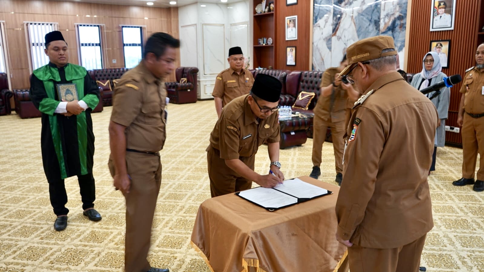 Acara kemudian ditutup dengan foto bersama dan ucapan selamat kepada pejabat yang dilantik.