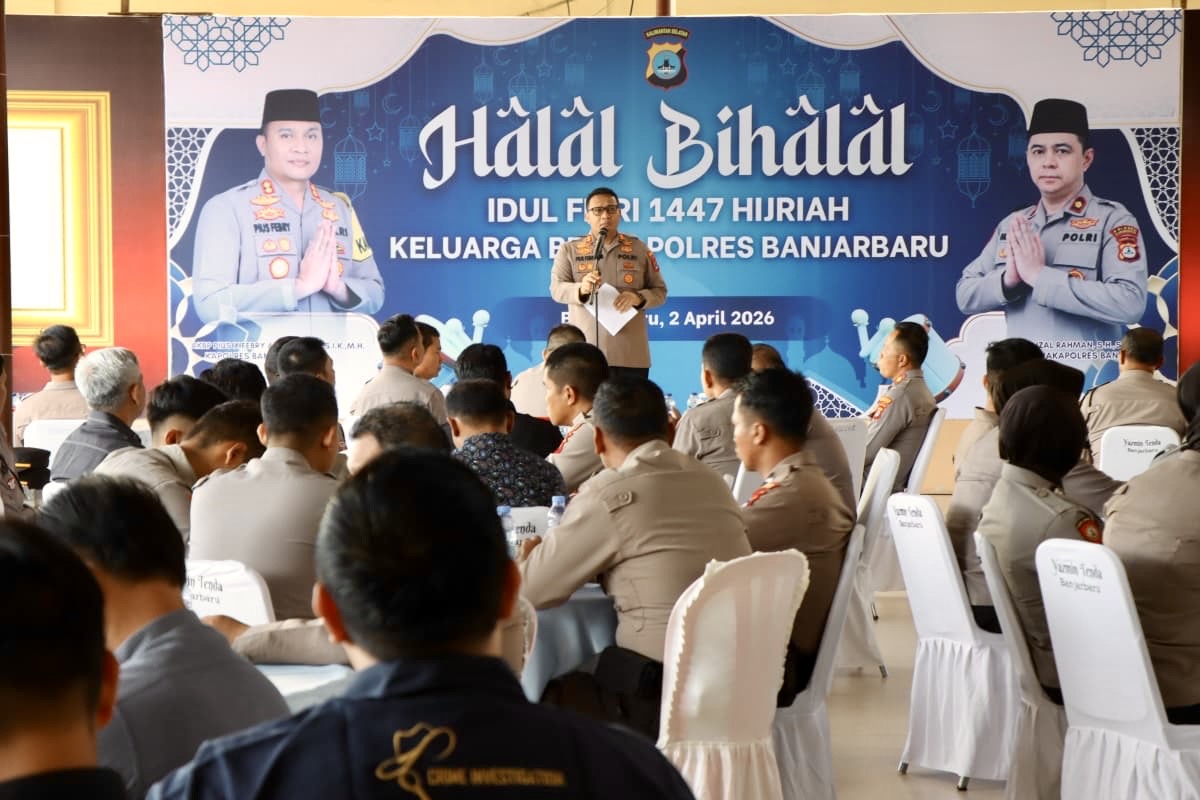 Liputan 24.net—Banjarbaru .Kapolres Banjarbaru, AKBP Pius X Febry Aceng Loda, menekankan pentingnya soliditas dan peningkatan kualitas pelayanan kepada masyarakat usai kegiatan Halal Bihalal Idulfitri 1447 Hijriah di lingkungan Polres Banjarbaru, Kamis (2/4/2026).