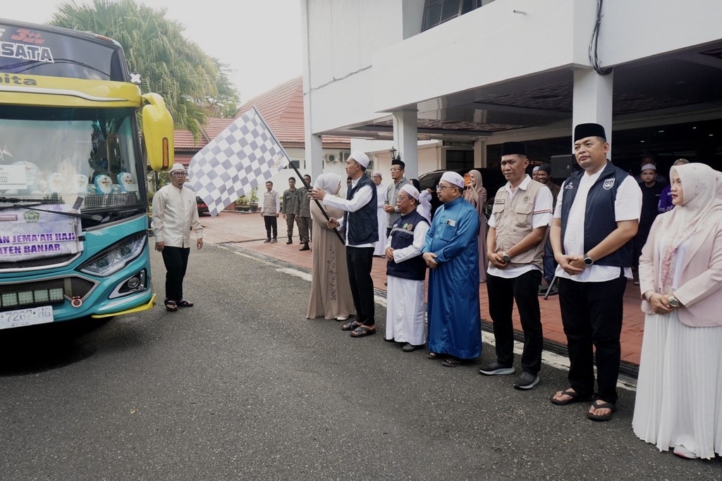 Liputan 24.net – Kabupaten Banjar. Bupati H Saidi Mansyur bersama Ketua TP PKK Hj Nurgita Tiyas, resmi melepas keberangkatan 360 Jemaah Calon Haji (JCH) kloter 02 asal Kabupaten Banjar tahun 2026 M/1447 H, di Mahligai Sultan Adam Martapura, Jum’at (24/4/2026) sore.